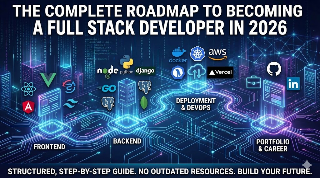 A structured, step-by-step guide covering frontend, backend, deployment, and portfolio building.